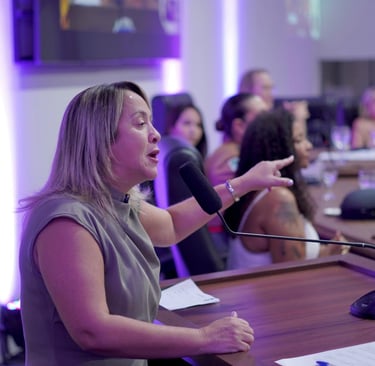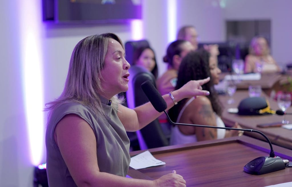 Em sua fala, a deputada também destacou a importância da presença feminina nos espaços de decisão e da união entre as mulheres. “Quando uma mulher ocupa seu espaço, ela puxa outra”, disse, ao defender que cada conquista feminina precisa abrir caminho para outras avançarem.
